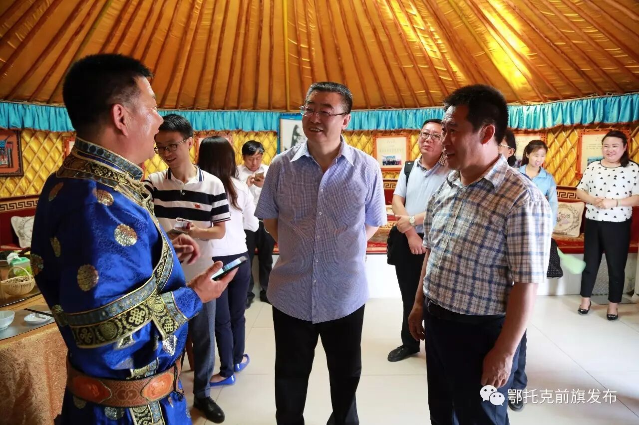 王开一行首先实地查看了我旗正在大力推进的“1+6”红色培训教育基地各场馆的建设及展陈布展情况,详细听取了相关历史介绍。王开对我旗加快红色文化资源开发利用表示赞赏,他指出,鄂托克前旗是革命老区,在革命战争年代,老一辈无产阶级革命家在这里留下了英勇的战斗足迹,形成了极为宝贵的革命精神财富,我们要时刻铭记历史、缅怀先烈,继承和发扬好革命老区精神。同时,鄂前旗要进一步加大宣传力度,充分挖掘和弘扬红色文化资源,借助教学基地平台,加强与周边地区的交流协作、促进优势互补、资源共享,推动红色旅游产业发展,提升对外知名度,扩大革命老区影响力。